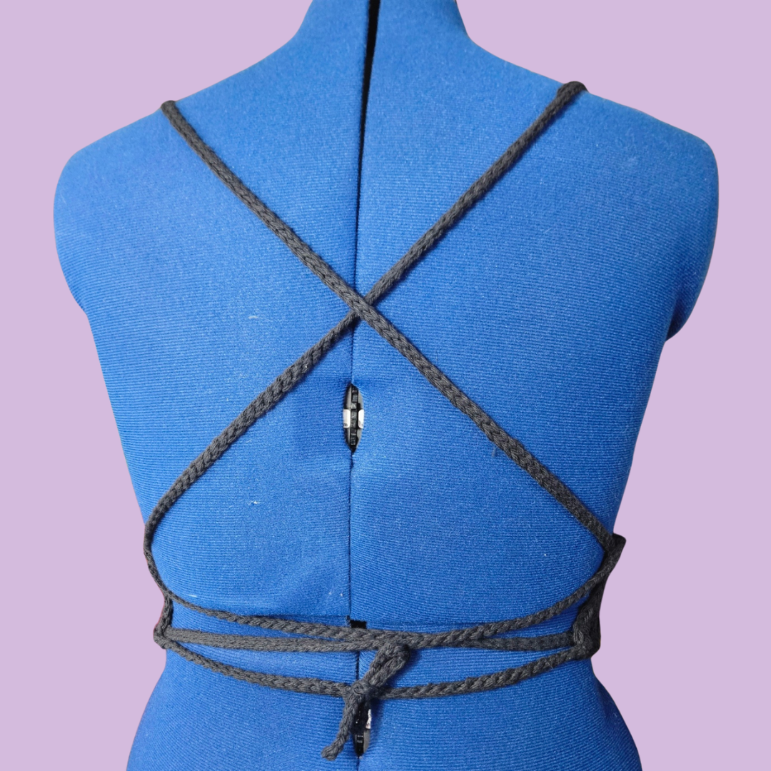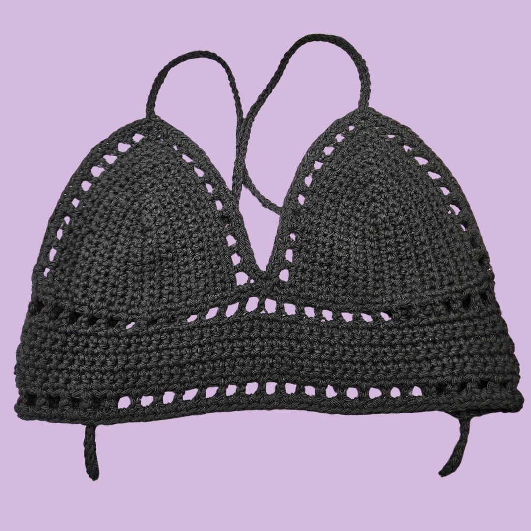 Crafted from soft 100% cotton yarn, the Black Lilly Top in size small features charming double crisscrossed straps that tie into a delicate bow at the back for a perfect, secure fit. A playful front lace lets you adjust coverage just how you like, ensuring comfort and confidence. This versatile black top is perfect for sunny beach days, lively festivals, or as a stylish base for countless summer looks. Embrace effortless charm and endless pairing possibilities with this handmade favorite. Feel free to reach out with any questions—it's made just for you!